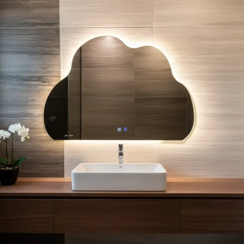 Espejo LED Bruma para Baño con Forma de Nube 70 x 100 cm, Luz Tricolor, Intensidad Regulable y Función Antiempañante Aporta un diseño original y sofisticado a tu baño con el espejo LED Bruma, una pieza decorativa de estilo moderno con forma de nube que combina estética, iluminación y funcionalidad para el uso diario. Cuenta con tres tipos de luz seleccionable: -Luz fría -Luz neutra -Luz cálida